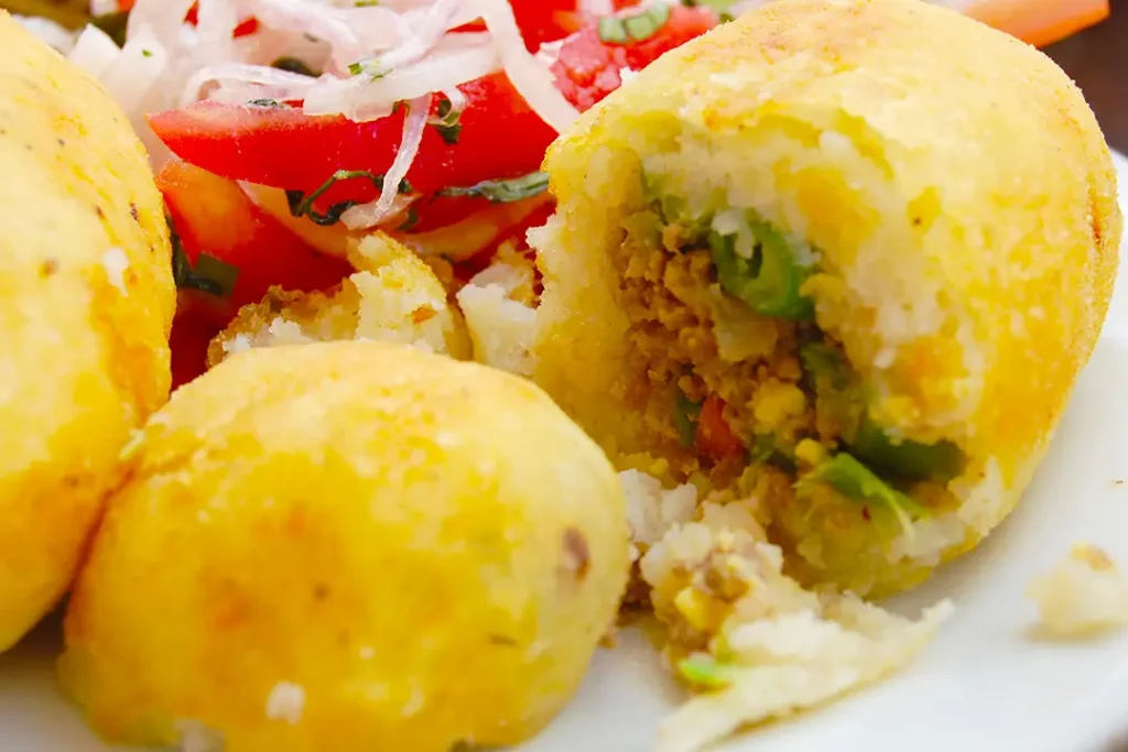 Gyllen utenpå. Myk inni. En oval ball av most potet, formet for hånd og fylt med krydret kjøtt, løk, urter – noen ganger med egg eller oliven – og deretter fritert til en skorpe dannes rundt det varme, saftige fyllet. Den spises helst varm. Noen ganger fra papir, andre ganger med gaffel og kniv, men helst med fingrene og litt lime.